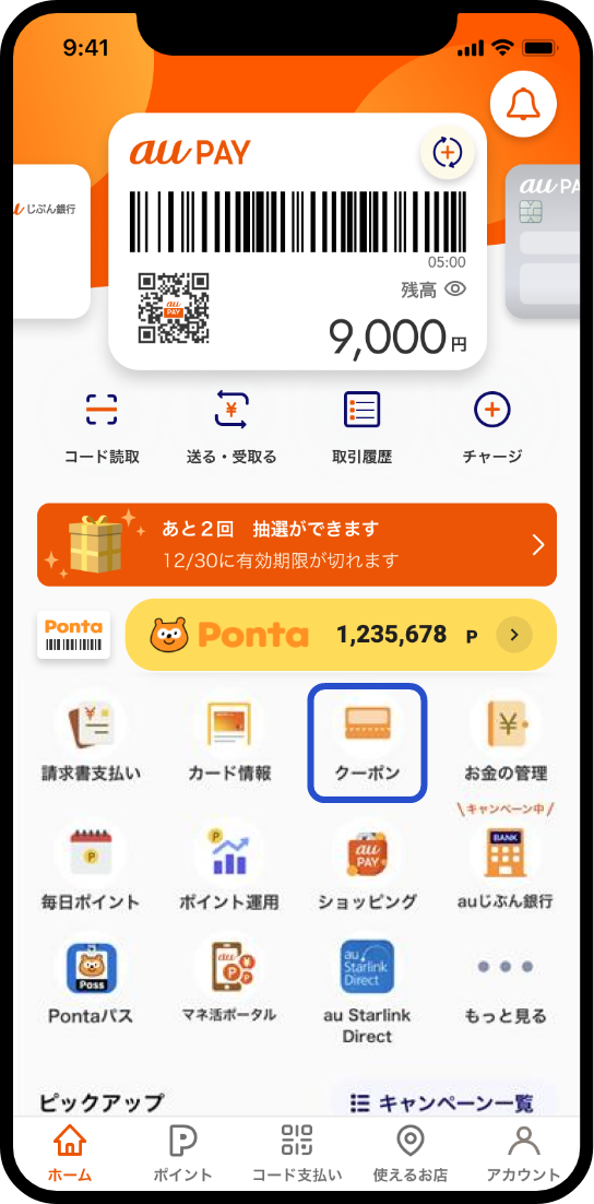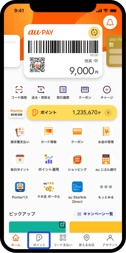 au PAY アプリ ホーム画面から